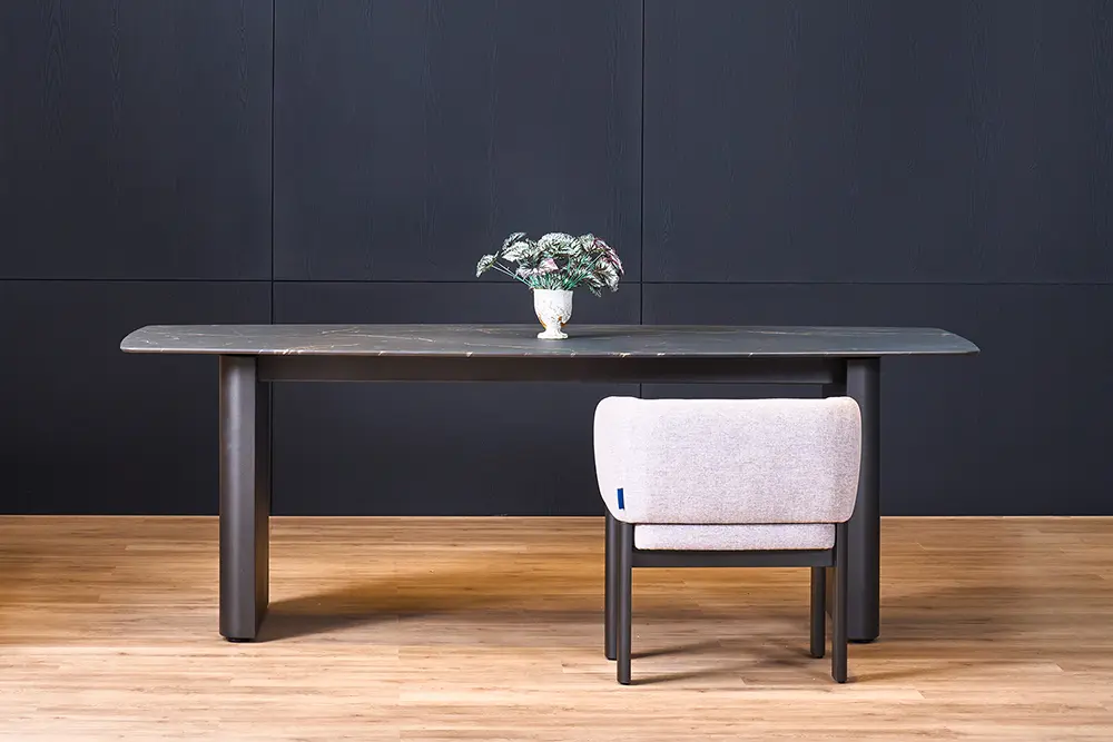 ทุกองค์ประกอบออกแบบเพื่อสร้างความรู้สึกนิ่ง เรียบ แต่ลึก และทำให้โต๊ะกลายเป็นจุดรวมของบทสนทนาและสายตาในห้อง