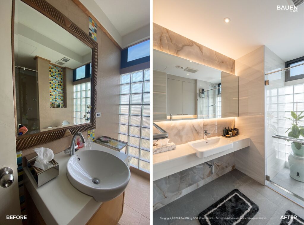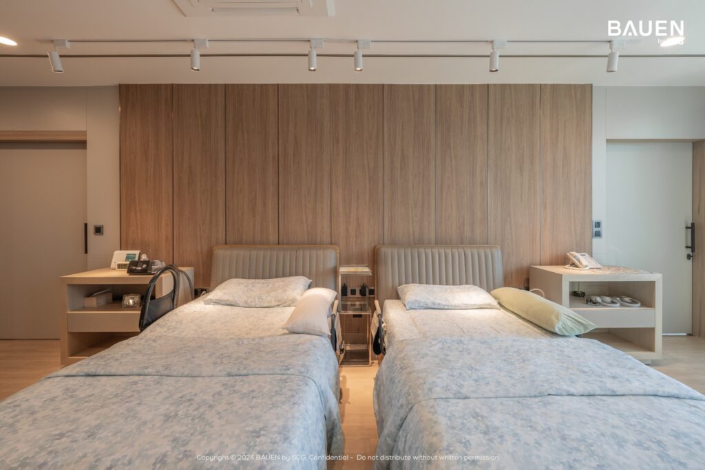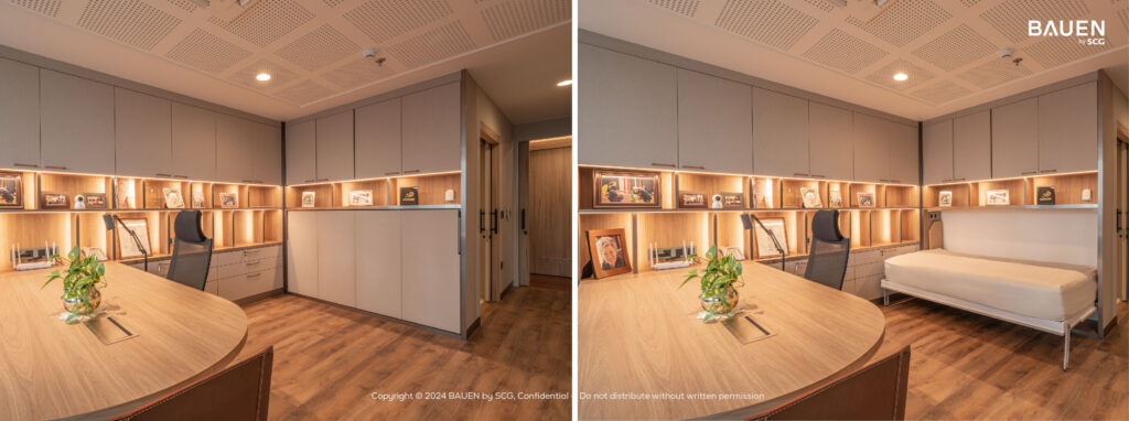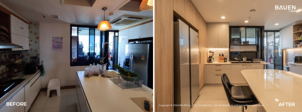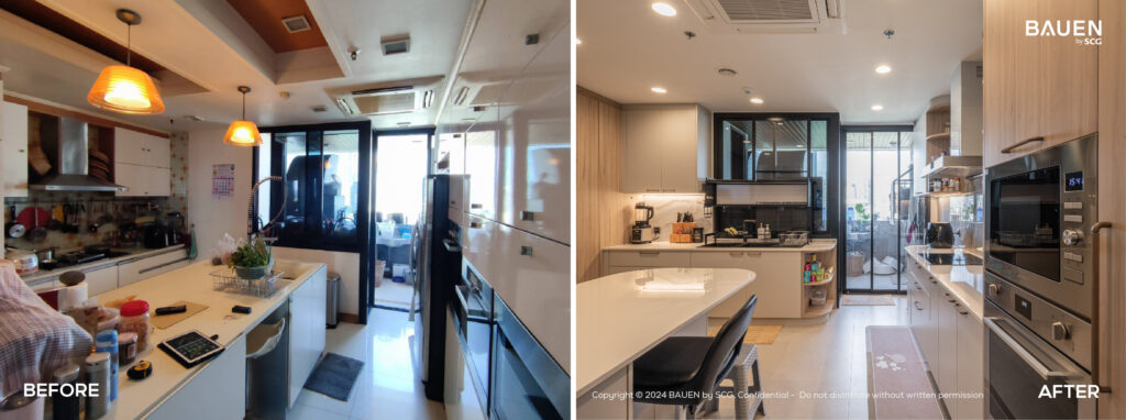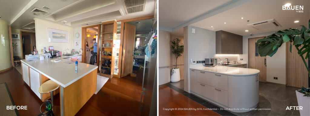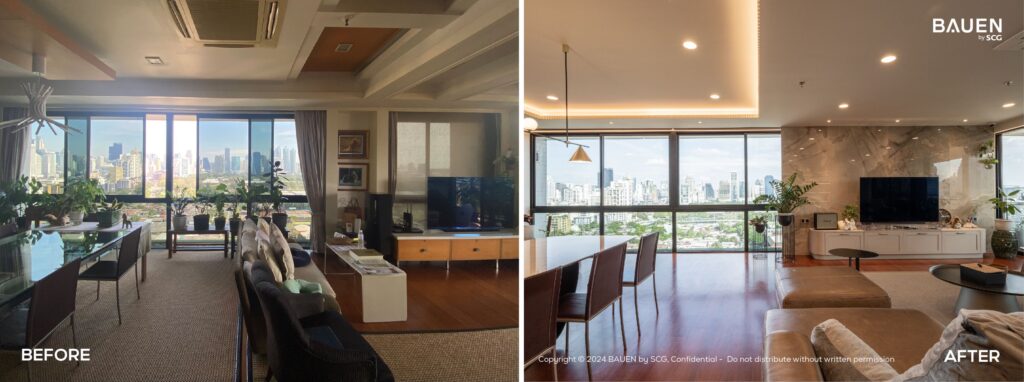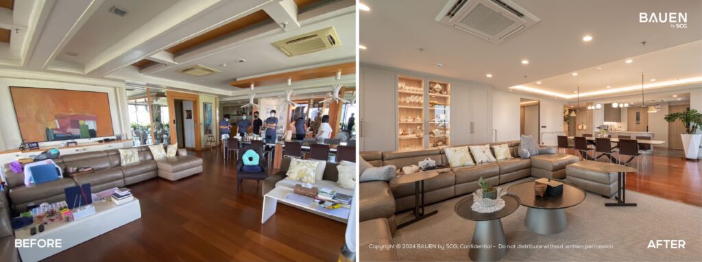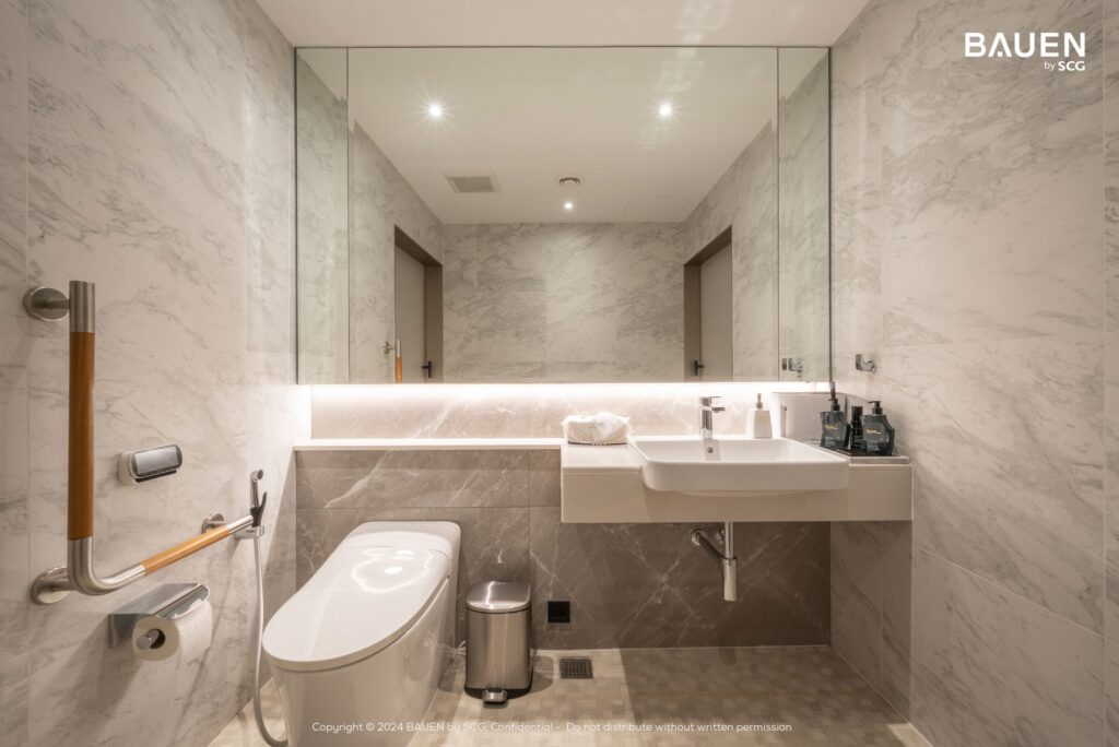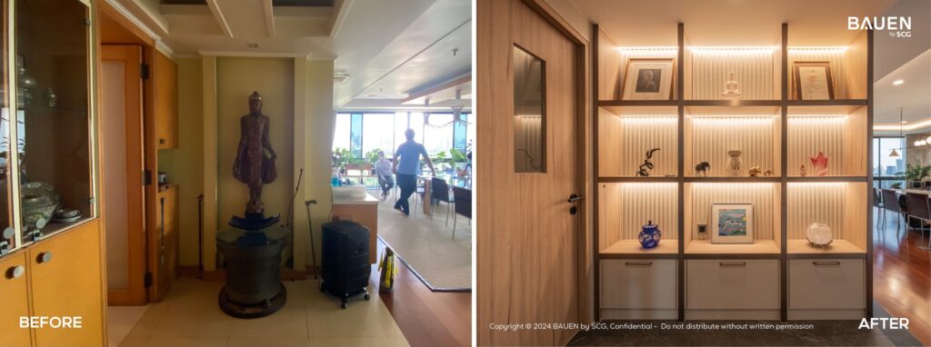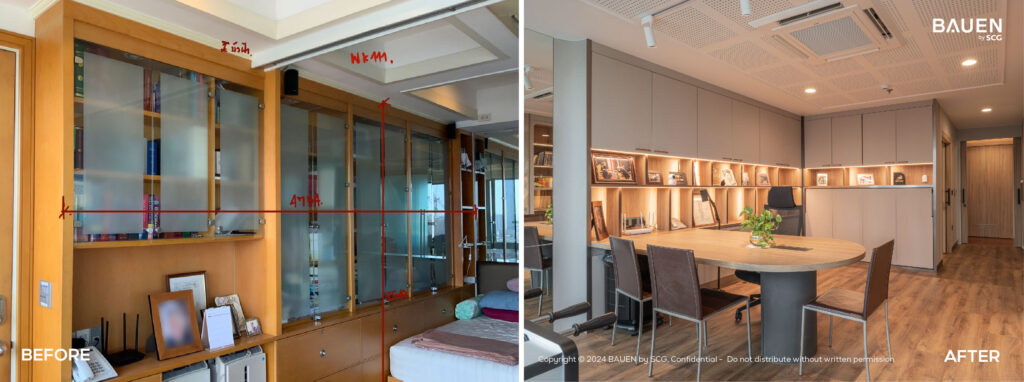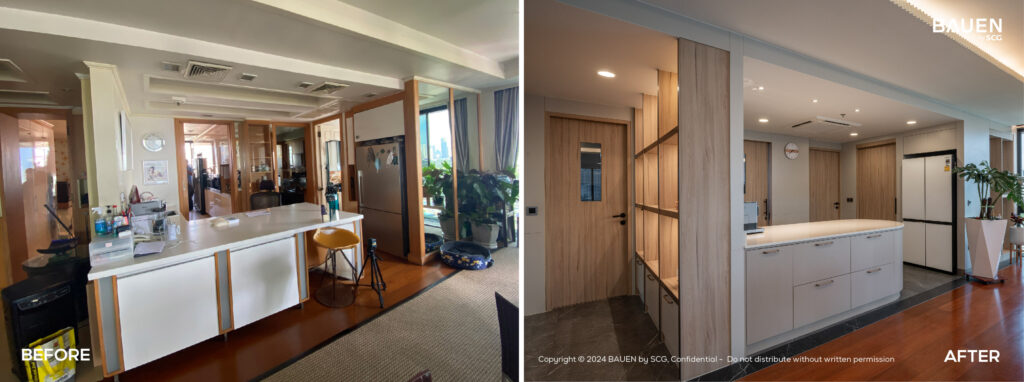 การรีโนเวตครั้งใหญ่จึงเริ่มขึ้น โดยมีหลักการออกแบบเพื่อผู้สูงอายุ “BAUEN Elder Delight” สอดแทรกเข้าไปเป็น Concept หลักของบ้านในทุกส่วนที่ผู้สูงอายุเข้าถึง ไล่ตั้งแต่โถงทางเข้า ห้องนั่งเล่น ห้องนอน หรือห้องน้ำ เพื่อให้มั่นใจได้ในการใช้ชีวิตอย่างสะดวก สบาย และปลอดภัย
