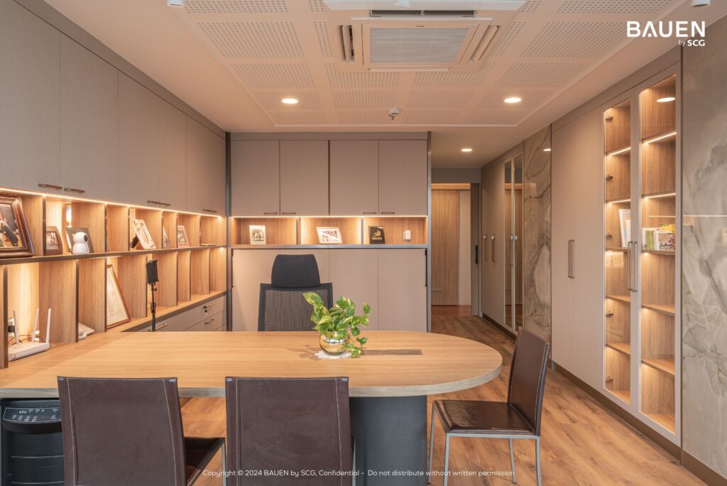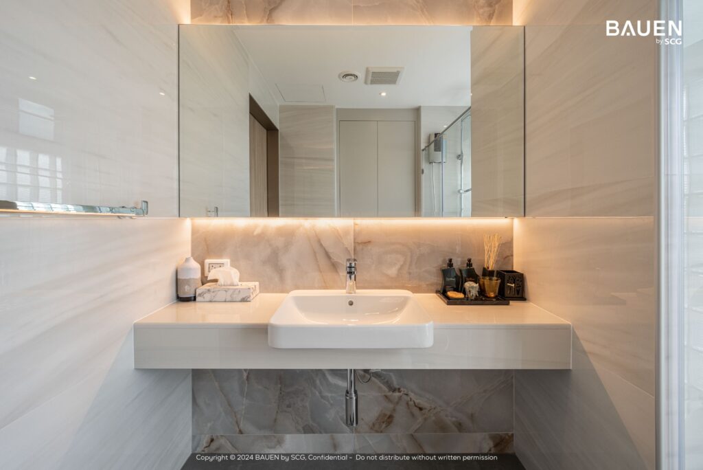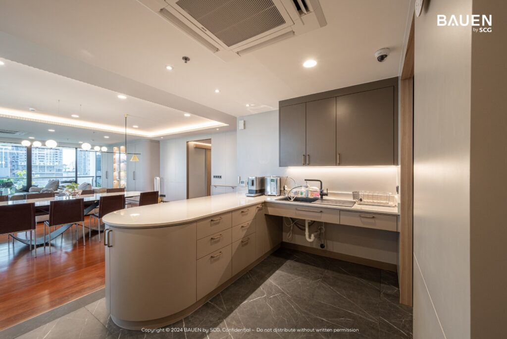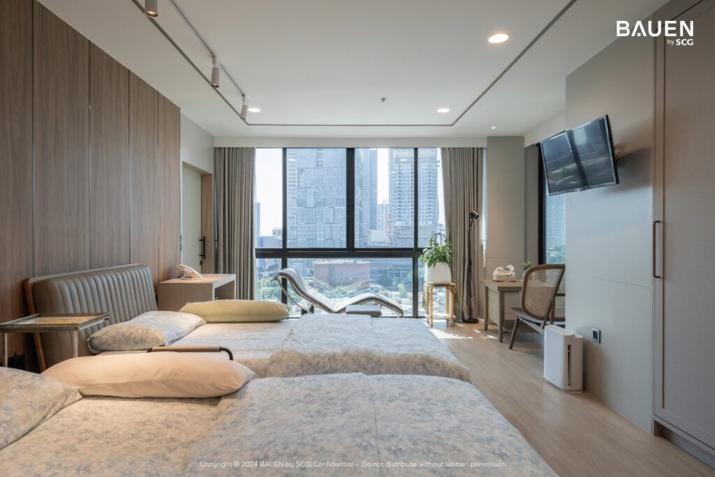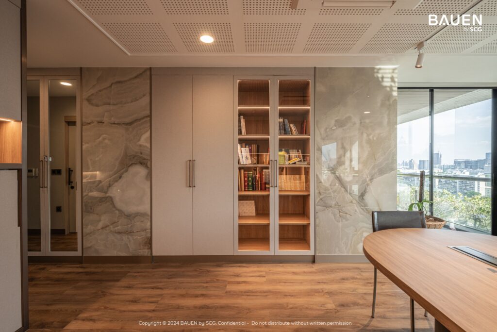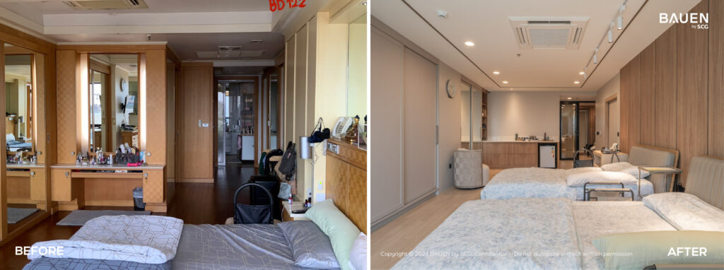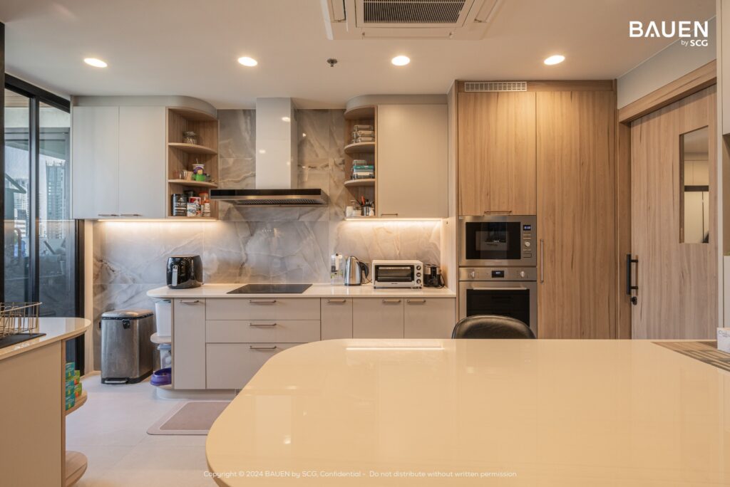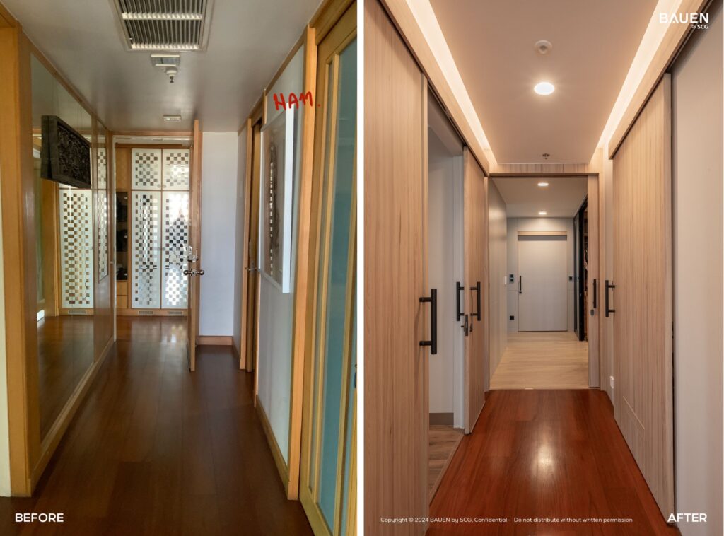 การรีโนเวตครั้งใหญ่จึงเริ่มขึ้น โดยมีหลักการออกแบบเพื่อผู้สูงอายุ “BAUEN Elder Delight” สอดแทรกเข้าไปเป็น Concept หลักของบ้านในทุกส่วนที่ผู้สูงอายุเข้าถึง ไล่ตั้งแต่โถงทางเข้า ห้องนั่งเล่น ห้องนอน หรือห้องน้ำ เพื่อให้มั่นใจได้ในการใช้ชีวิตอย่างสะดวก สบาย และปลอดภัย